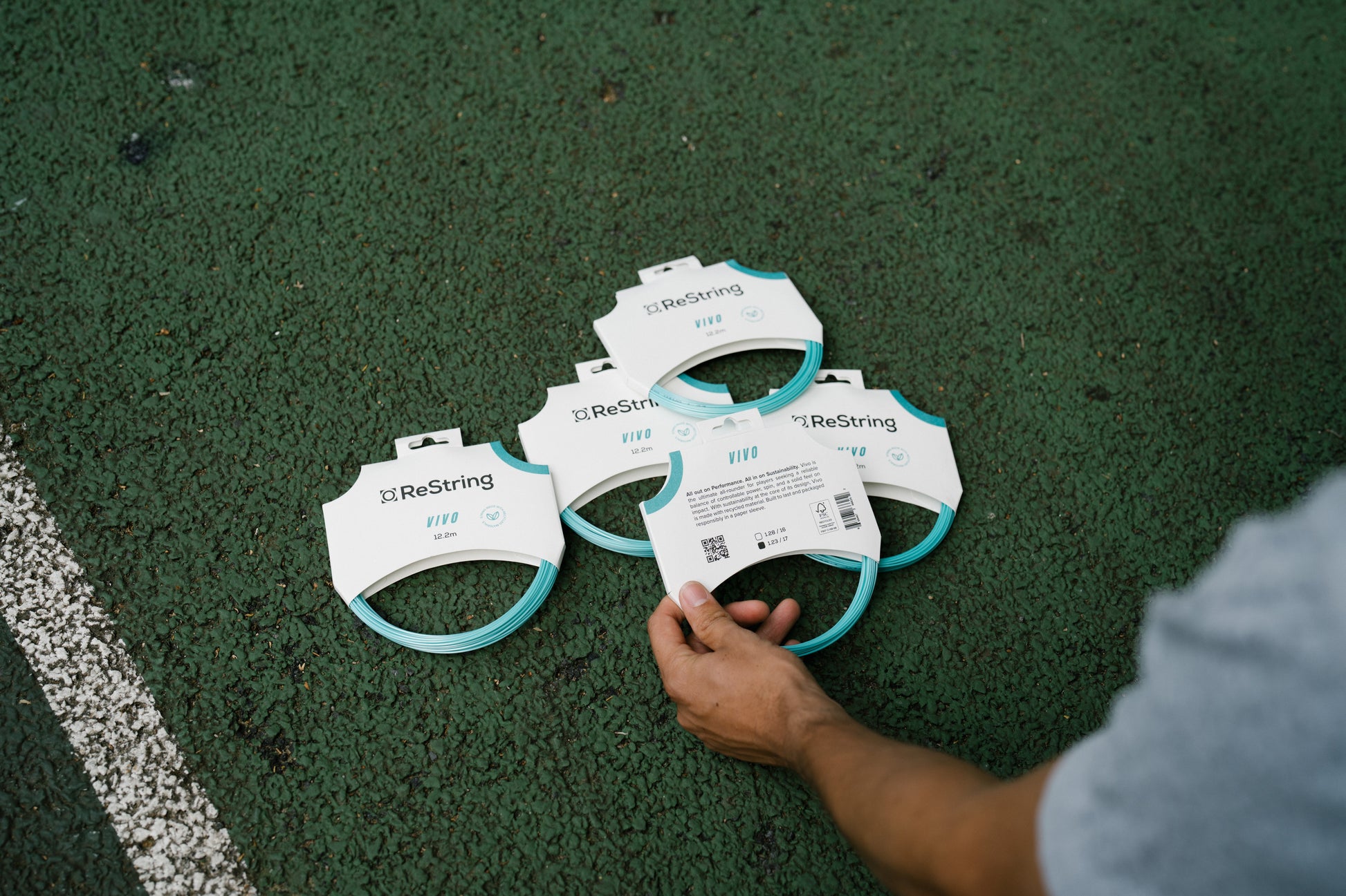 5 sets of Vivo - Crafted from recycled materials, Vivo goes all out on performance and all in on sustainability. Offering exceptional control coupled with a gripping bite on the ball — Vivo gives players the confidence to place every shot with precision and spin. Built to last and packaged responsibly in a paper sleeve.