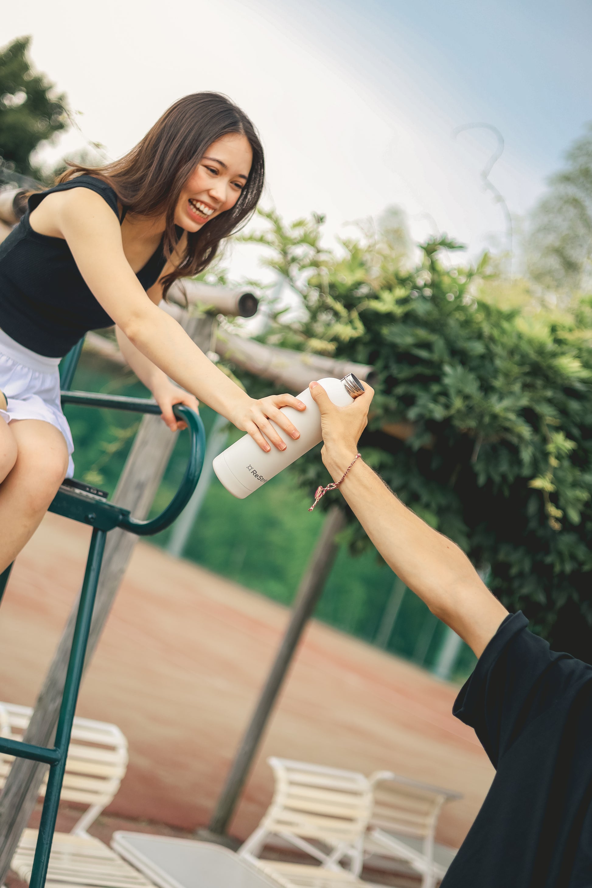 Designed with double-walled stainless steel and a beautiful matte finish. The cherry on top is the wooden twist lid engraved with the ReString logo.