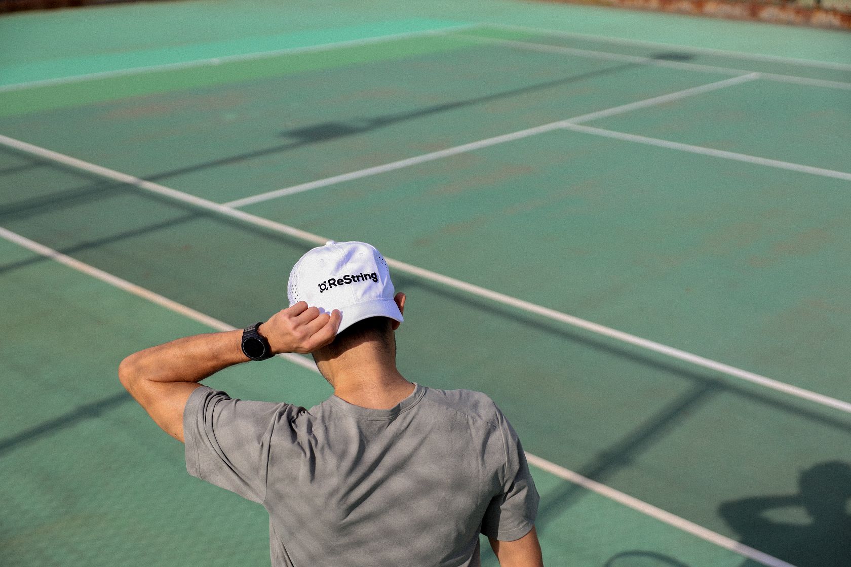Stay cool and focused with The ReString Hat. Made from lightweight, breathable fabric, it offers a sleek, minimalist look and excellent sun protection. The adjustable strap ensures a perfect fit, ensuring you maintain peak performance during every match.